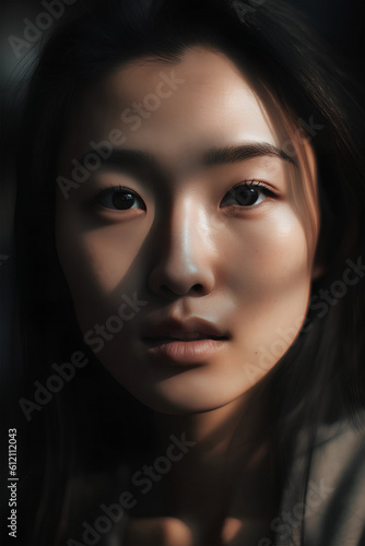 modern Portrait of an Asian woman, close-up, scenic natural light. Ai generative art