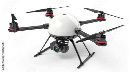 drone, camera, technology, aerial, modern, design, sleek, innovative, ball-shaped, propeller, arm, black, red, accent, photo, surveillance, engineering, advanced, versatile, equipment, flying, motion, neutral, surface, white, compact, precision, operation, utility, tool, contraption, craft, device, futuristic, capture, video, smooth, geometric, practical, control, creative, responsive, efficiency, intelligence