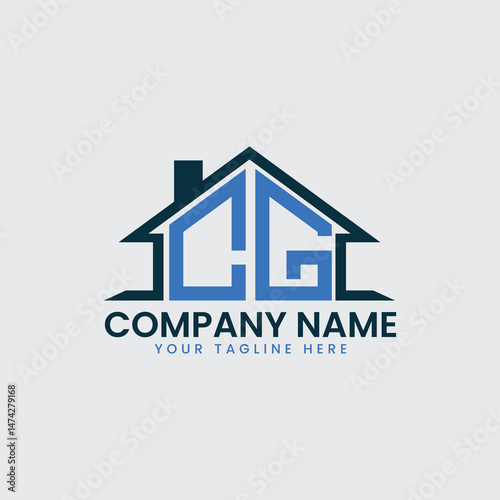Modern Real Estate Logo with House Roof Icon and Custom Letter Monograms