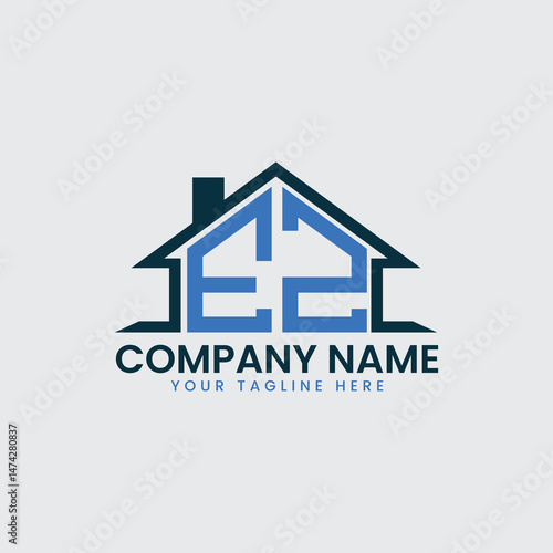 Modern Real Estate Logo with House Roof Icon and Custom Letter Monograms