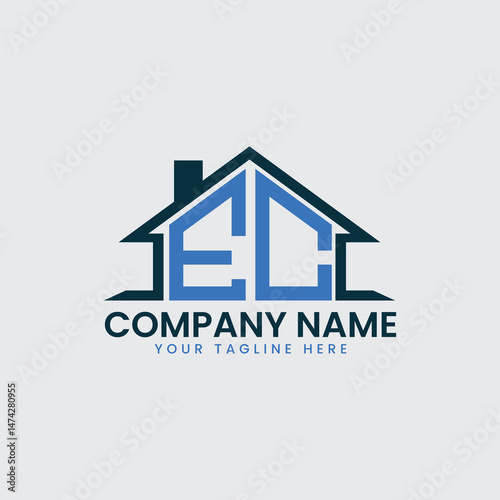 Modern Real Estate Logo with House Roof Icon and Custom Letter Monograms