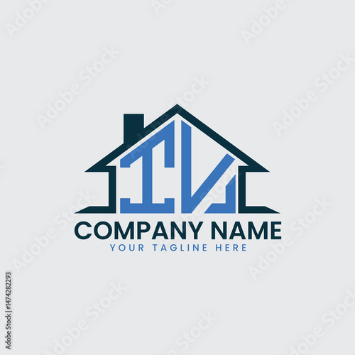 Modern Real Estate Logo with House Roof Icon and Custom Letter Monograms