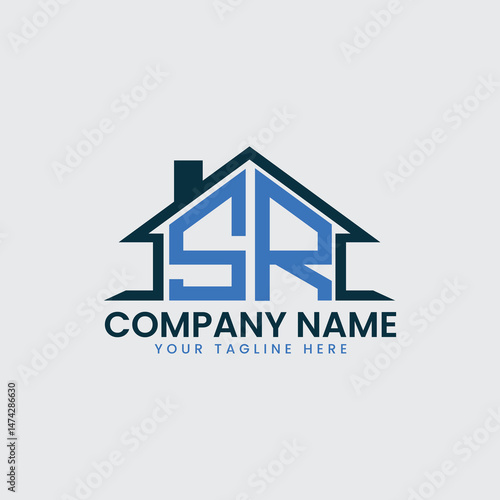 Modern Real Estate Logo with House Roof Icon and Custom Letter Monograms