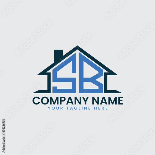 Modern Real Estate Logo with House Roof Icon and Custom Letter Monograms