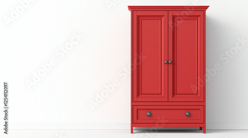 modern red cabinet wardrobe With Shelves isolated on white background , Closet furniture with doors and drawers