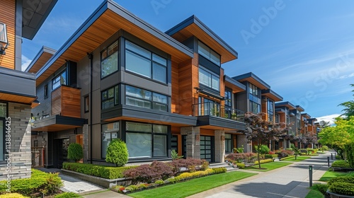 architecture, building, design, modern, residential, urban, landscaping, nature, tree, sidewalk, sunlight, exterior, contemporary, home, community, structure, facades, window, neighbourhood, aesthetic, environment, greenery, construction, space, layout, style, harmony, symmetry, light, peaceful, vibrant, clean, inviting, luxury, detail, colours, perspective, area, plan, location, elevation, setting, atmosphere, calmness, beauty, suppressing, attracted