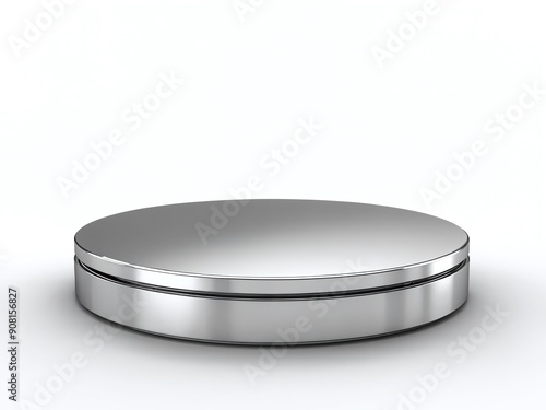 Modern round metallic container positioned on light background in an artistic display