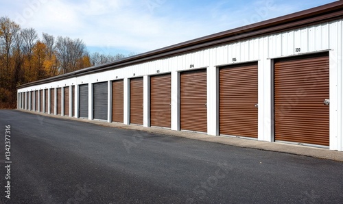 storage, unit, self, facility, building, autumn, fall, door, metal, brown, white, row, exterior, residential, commercial, rental, property, business, industry, parking, secure, safe, space, convenient, access, location, number, organised, clean, modern, design, architecture, landscape, daytime, daylight, tree, leaf, sky, asphalt