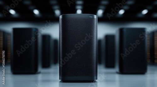 speaker, sound, audio, wireless, music, home, portable, bluetooth, high fidelity, stereo, bass, treble, loud, clear, digital, amplifier, surround, smart, voice, control, streaming, cyberspace, network, server, room, datum, technology, innovation, design, modern, black, dark, tech, futuristic, elegant, compact, powerful, audiophile, quality