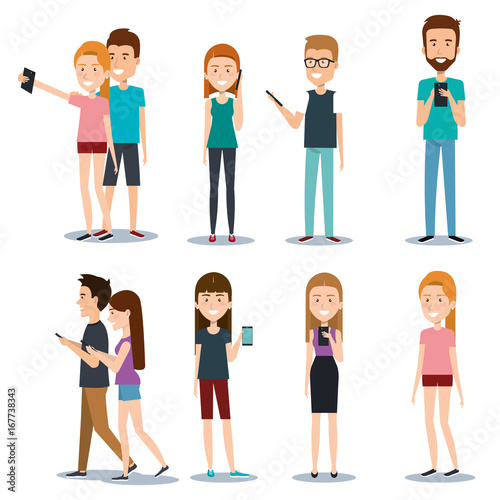 communication, society, young, smartphone, group, people, mobile, vector, illustration, network, technology, modern, cyberspace, social, flat, phone, concept, community, business, web, wireless, message, media, chat, icon, design, online, man, connect, device, cartoon
