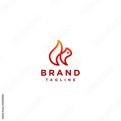Modern Squirrel Outline Logo Design. Simple squirrel animal outline logo design in the form of a fire symbol.