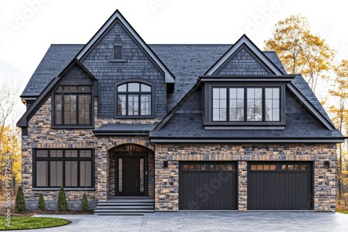 Modern Stone House With Black Accents Amidst Autumn Trees During Daytime