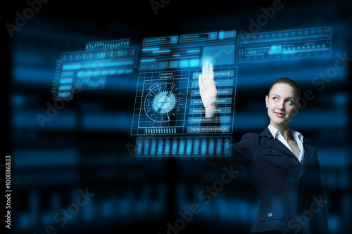 businesswoman, interface, panel, touch, presentation, virtual, working, attractive, smile, press, use, report, innovative, innovation, screen, access, blue, business, computer, connect, connection, contact, datum, diagram, sensor, digital, female, technology, global, globalisation, graph, woman, hand, cyberspace, market, net, network, operating, search
