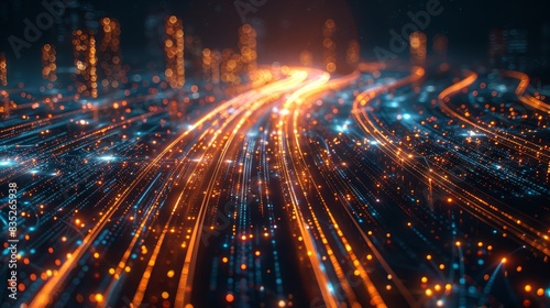 Modern Technology Concept: Smart city with speed line glowing light trail surround the city