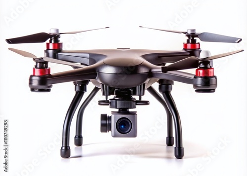 Modern UAV Quadcopter Drone with Camera for Aerial Photography, Isolated on White Background Perfect for Product Advertising and Technology Showcases in Stock Photography