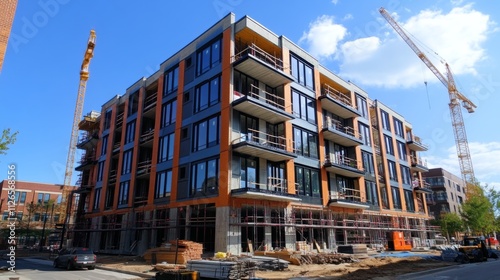 modern, crane, blue skies, architecture, engineering, artistic, contrast, composition, development, functional, innovative, city landscape