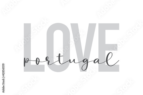 Modern, urban, simple graphic design of a saying "Love Portugal" in grey colors. Trendy, cool, handwritten typography