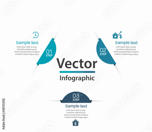 Modern vector infographic template with 3 steps for business. Can be used for workflow layout, diagram, annual report, web design