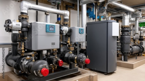 Modern water pumping system with advanced technology in a commercial building maintenance area