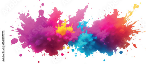 "Modern Watercolor Magic: A Burst of Bright Colors in Bold Brush Strokes and Vibrant Splatter, Blending Into a Rainbow Aquarelle Pattern on a Crisp White Background – A Trendy Artistic Element"