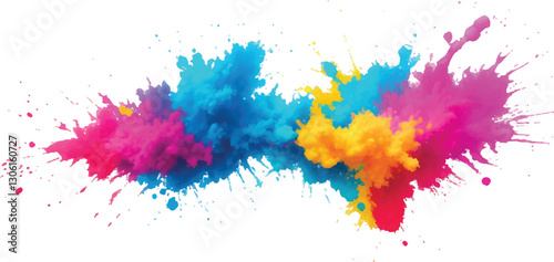 "Modern Watercolor Magic: A Burst of Bright Colors in Bold Brush Strokes and Vibrant Splatter, Blending Into a Rainbow Aquarelle Pattern on a Crisp White Background – A Trendy Artistic Element"