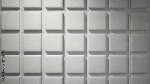 Modern White 3D Square Panel Wall Texture with Soft Lighting and Shadow – Minimal Geometric Interior Background for Architecture and Design