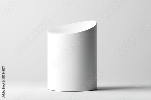 Modern white cylindrical sculpture displayed against a minimalist background highlighting its smooth curves and elegant design