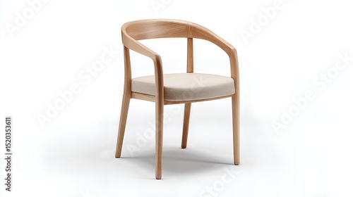 Modern wooden chair with fabric seat viewed from an angle, isolated on a white background