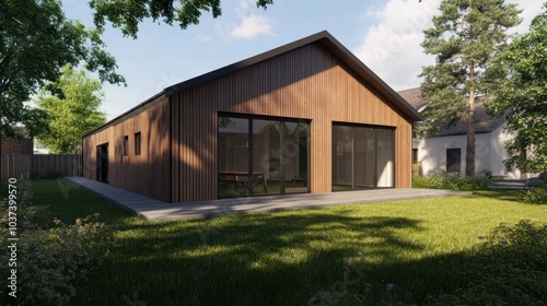 Modern Wooden House in a Backyard