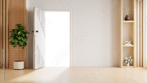 interior, door, open, modern, room, shelf, wooden, minimal, plant, pot, black, background, frame, white, empty, wood, floor, natural, sunlight, daylight, light, entry, entrance, home, clean, decor, flower, wall, architecture, peaceful, calm, style, stylish, elegant, scandinavian, tree, bright, texture, simple, design, creative, aesthetic, layout, concept, copy space, template, zen