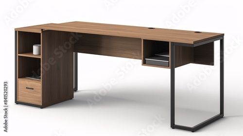 modern, wooden, office, desk, with, metal, frame, and, storage, shelve, drawer, ideal, minimal, solution, standard, roomy, aesthetic, furniture, sturdy, assembly, quality, functional, versatile, stylish, tidy, table, wood, bench, design, chair, brown, interior, empty, object, home, isolated, seat, stool, three-dimensional, nobody, illustration, style