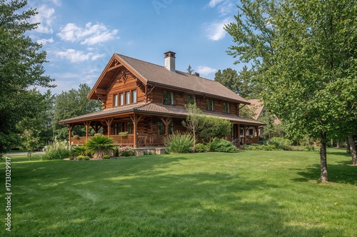 country, dacha, yard, estate, garden, real, summer, front, landscaping, district, countryside, homestead, timber, sky, contemporary, veranda, house, city, landscape, construction, home, building, architecture, window, gardening, day, facades, timberland, residence, residential, terrace, outdoors, russian, suburb, luxury home, bungalow, weekend, suburban, sunbeam, detached, girder, dwelling, scene, backside, exterior, no people, nobody