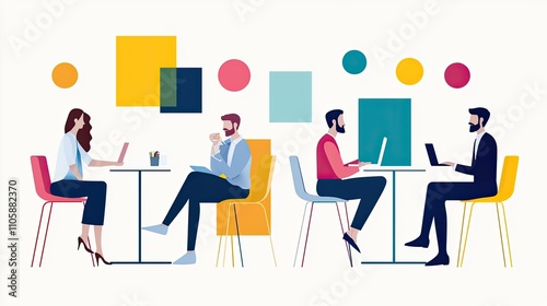 workspace, collaboration, professional, creativity, teamwork, technology, design, laptop, meeting, modern, illustration, startup, casual attire, colourful, productivity, communication, hot drink, business, office, lifestyle, people, brainstorming, innovation, digital, engagement, connection, environment, co-worker, office furniture, contemporary, young adult, casual attire, table, chair, freelance, networking, discussion, planning, cheerful, diversity, idea, art, friendly, studio, vivid colors, ambience