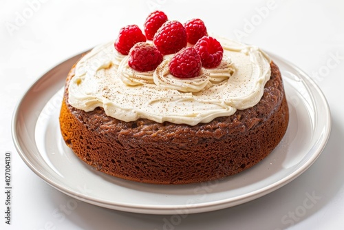 Moist Banana Cake with Cream Cheese Frosting and Fresh Raspberries