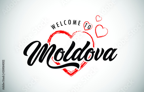 Moldova Welcome To Message with Handwritten Font in Beautiful Red Hearts Vector Illustration.