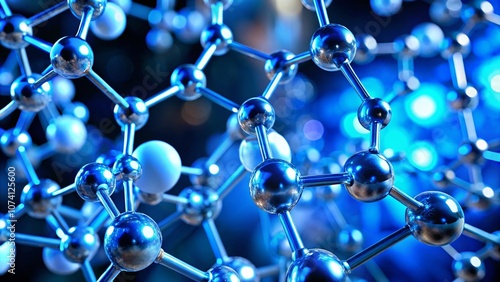 Molecular Structure Illuminated by Blue Light Against a Blurred Background, Capturing the Essence of Scientific Discovery and Modern Research in a Striking Composition