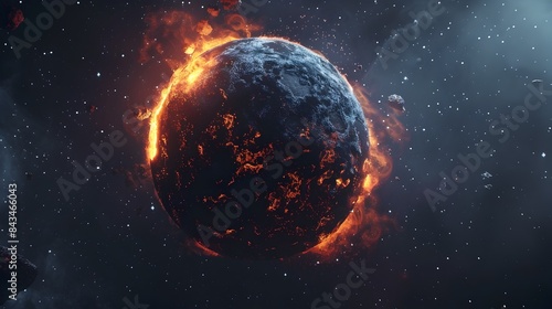 Molten Celestial Orb Drifting Through Starry Outer Space