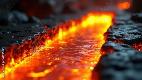 Molten Lava Flowing Through Rocky Terrain, Capturing Heat and Natural Forces