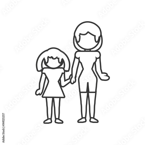 mom with daughter family outline vector illustration eps 10