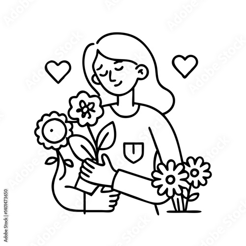 mom with flowers icon, mom with flowers line art - simple line art of mom with flowers, perfect for mom with flowers logos and icons