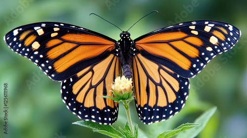 butterfly, monarch, wing, garden, closeup, insect, nature, flower, open, wildlife, spring, summer, pollination, beauty, animal, macro, orange, black, white, flora, fauna, colours, detailed, bright, beautiful, vibrant, wingspan, antennae, leg, pattern, background, green, blur, soft, sharpened, art, design, image, stock, photo