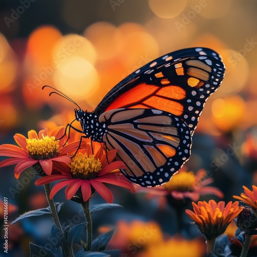 monarch butterfly, butterfly, red flower, insect, flower, nature, closeup, vibrant, detail, floral, wildlife, summer, blossom, macro, orange, wing, beautiful, background, botany, nectar, bloom, delicate, garden, flora, sunlight, natural, wild, colourful, closeup, life, pollinator, field, flower petals, beauty, seasonal, elegant, serene, detailed, alive, environment, pretty