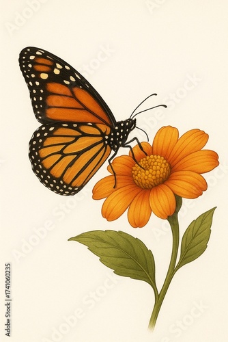 butterfly, monarch, flower, orange, insect, nature, spring, pollination, botanical, garden, flora, fauna, wildlife, illustration, animal, wing, wing, macro, fly, summer, colourful, black, bug, beauty, beautiful, closeup, feeding, lepidoptera, flower, isolated