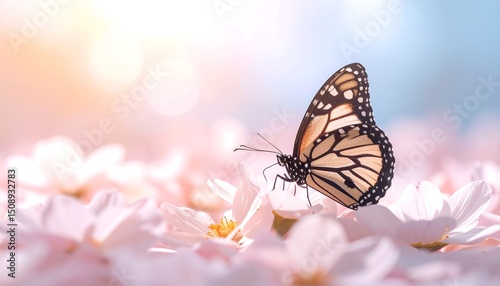 butterfly, monarch, flower, pink, blossom, sunlight, spring, summer, nature, beauty, delicate, wing, insect, flora, pastel, soft, light, bokeh, peaceful, serene, calm, tranquil, vibrant, colourful, bloom, flower petals, garden, field, meadow, macro, closeup, wildlife, invertebrate, fauna, background, image, photograph, art, pretty, lovely, amazing, wonderfully