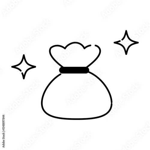 illustration, icon, money, bag, money bag, savings, wealth, finance, economy, cash, rich, success, reward, fortune, income, profit, deposit, banking, currency, asset, treasure, payout, earning, financial, fund, capital, commerce, business, sparkle, shiny, black-and-white, simple, outline, isolated, traditional, prize, graphic, gift, bonus, pouch, economic