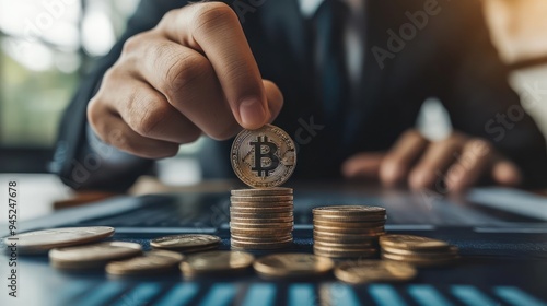 Money interest rate increase concept, percentage commission credit. Grow up stock risk management