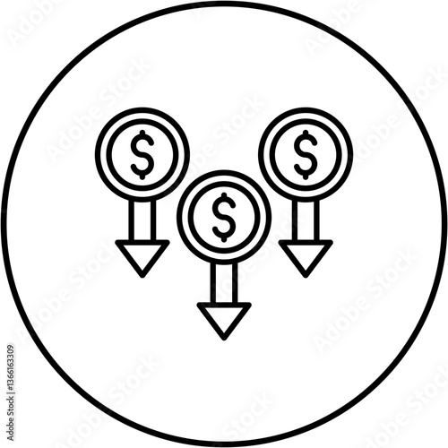 money, loss, decrease, deficit, downturn, bankruptcy, reduction, vector, icon, illustration, stock exchange