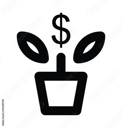 money, plant, pot, leafage, sapling, growing, ecology, botanical, icon, vector, dollar