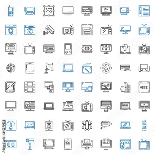monitor, icon, set, vector, television, layout, computer, graphic, design, tablet, cctv, browser, electronic, laptop, voltmeter, motherboard, console, video, game, radar, television, monitoring, screen, home, cinema, mobile phone, illustration, symbol, technology, signs, black, cyberspace, digital, web, flat, isolated
