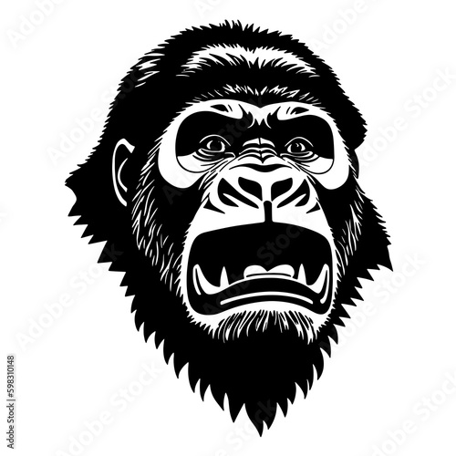 monkey, king kong, gorilla, chimpanzee, orang, gibbon, head, black-and-white, illustration, symbol, tropics, liana, africa, anthropoid, baboon, circus, silhouette, jump